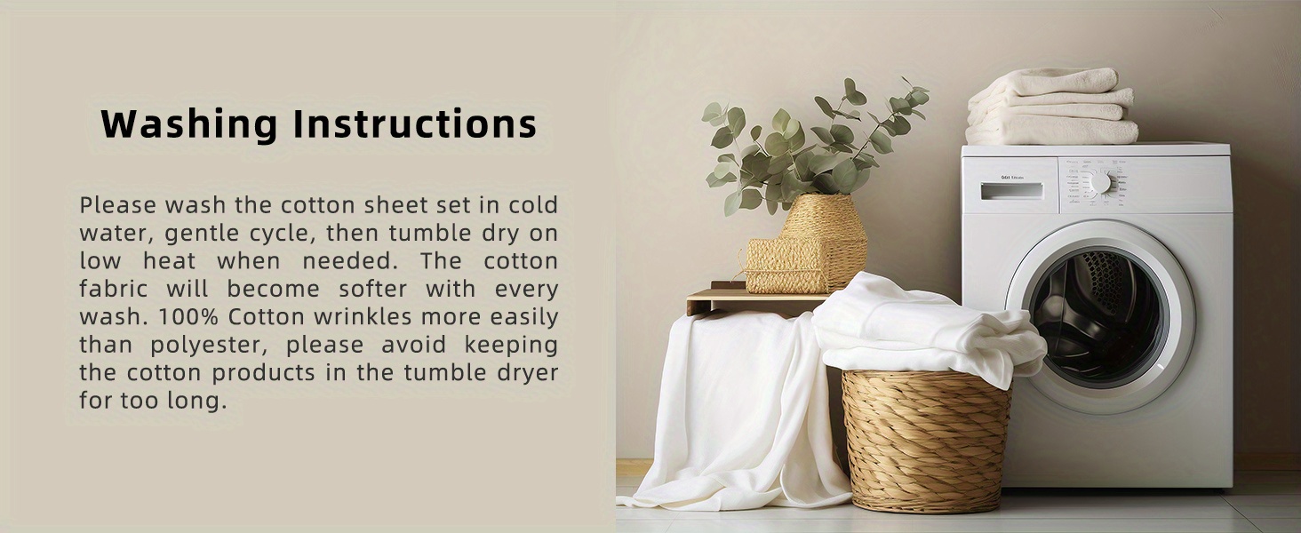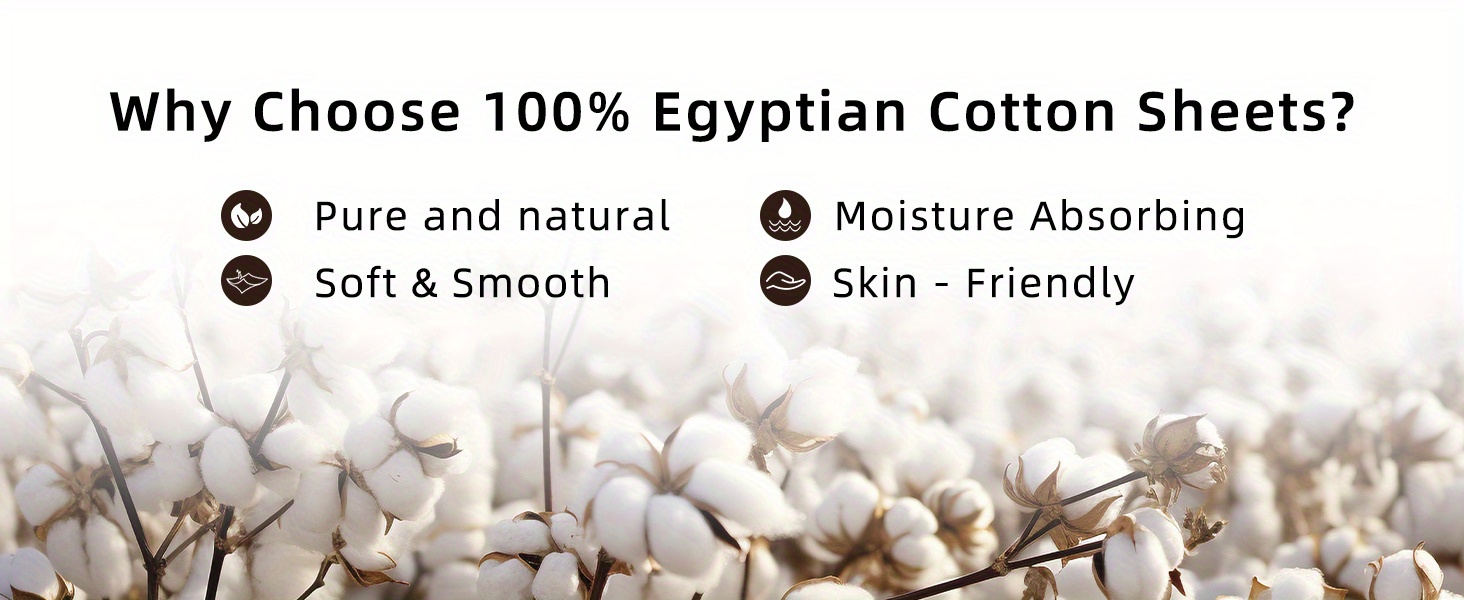 SOFT & BREATHABLE: The queen Egyptian Cotton sheet set has excellent moisture absorption and breathability. Egyptian Cotton sheets can promote better airflow and regulate temperature throughout the night. The 100% Egyptian Egyptian Cotton has a soft touch, making you fall in love with sleeping. The queen bed sheets Egyptian Cotton can be used in all seasons. WARM TIPS: Please wash the queen sheet set Egyptian Cotton in cold water, gentle cycle, then tumble dry on low heat when needed. The Egyptian Cotton will become softer with every wash.
