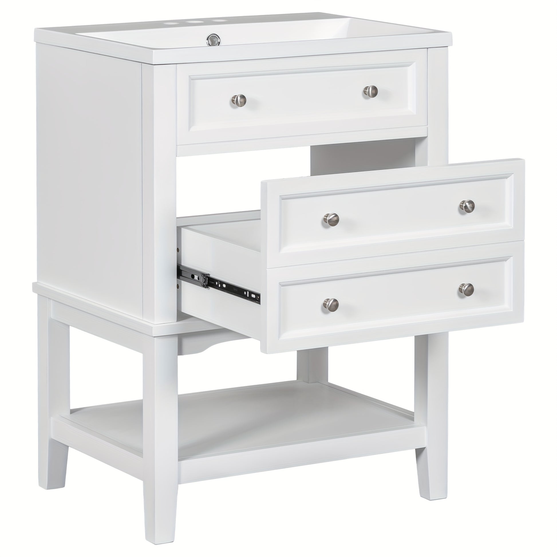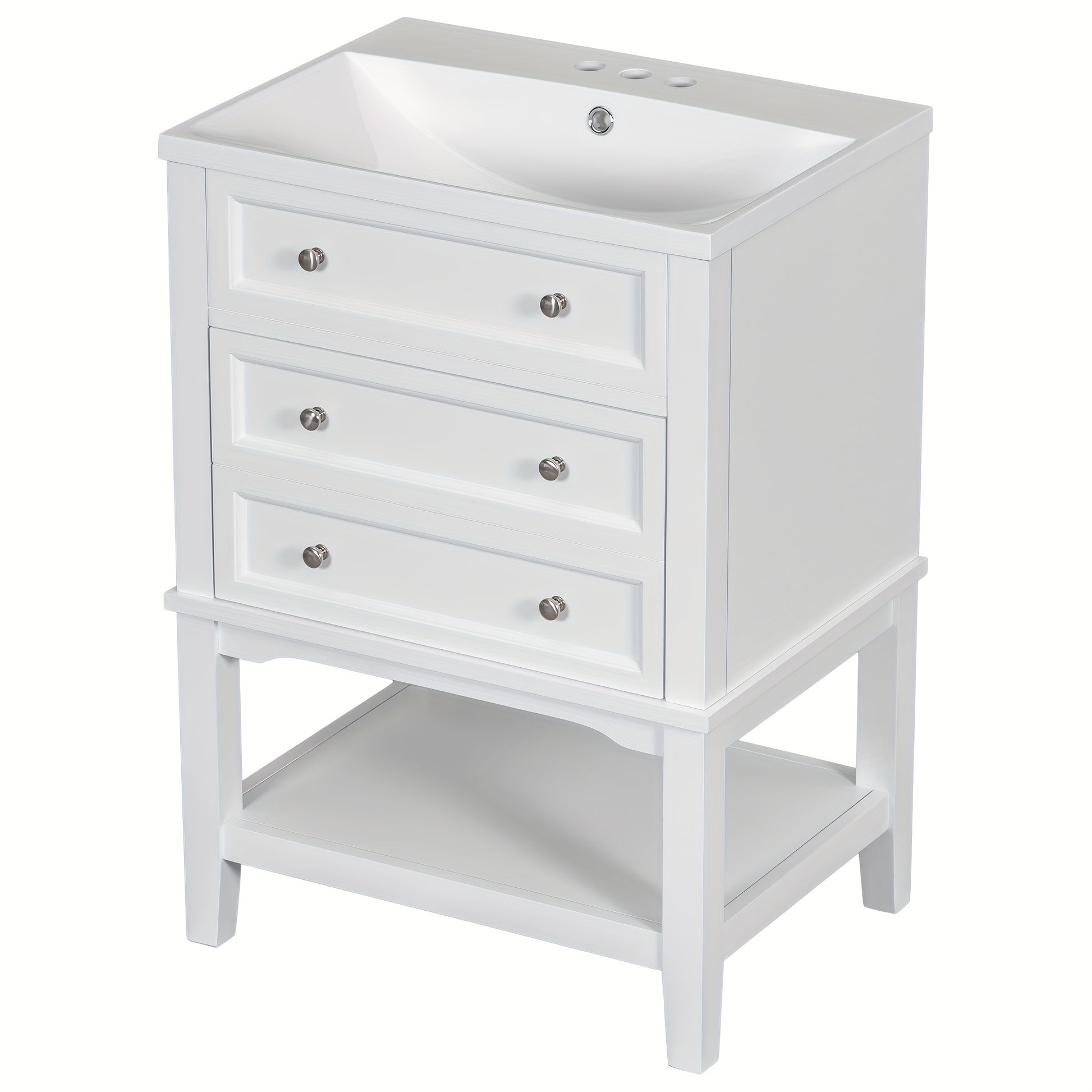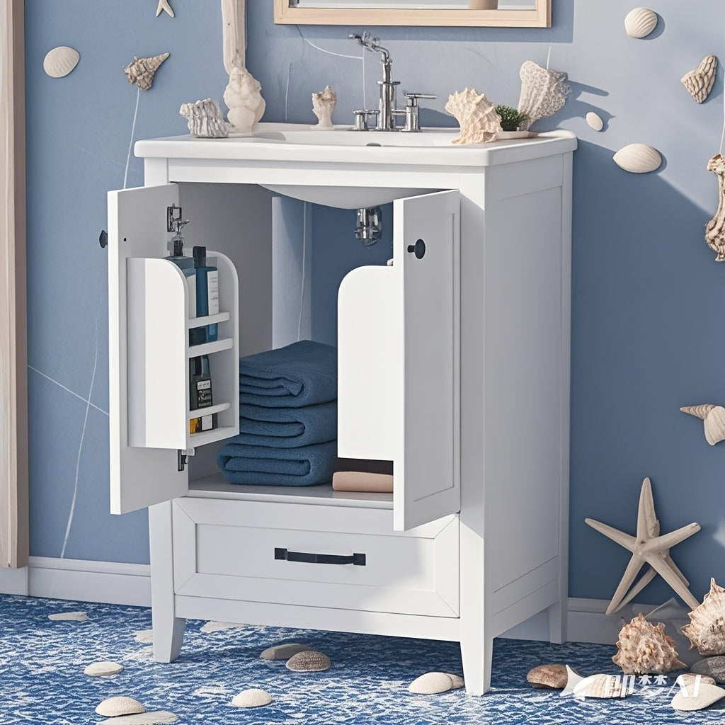 24 Inch Bathroom Vanity with Sink, Solid Wood Frame Storage Cabinet, Freestanding, White