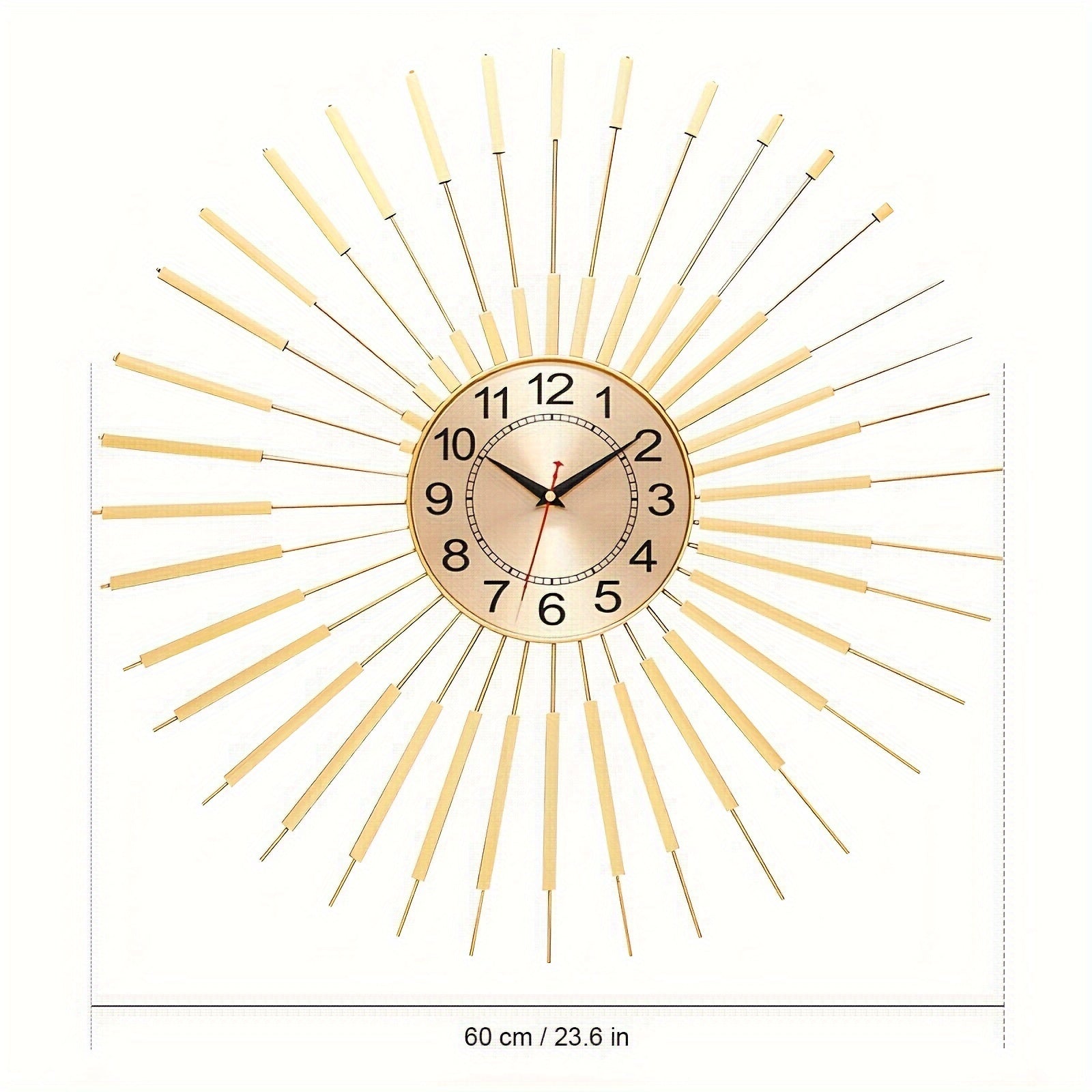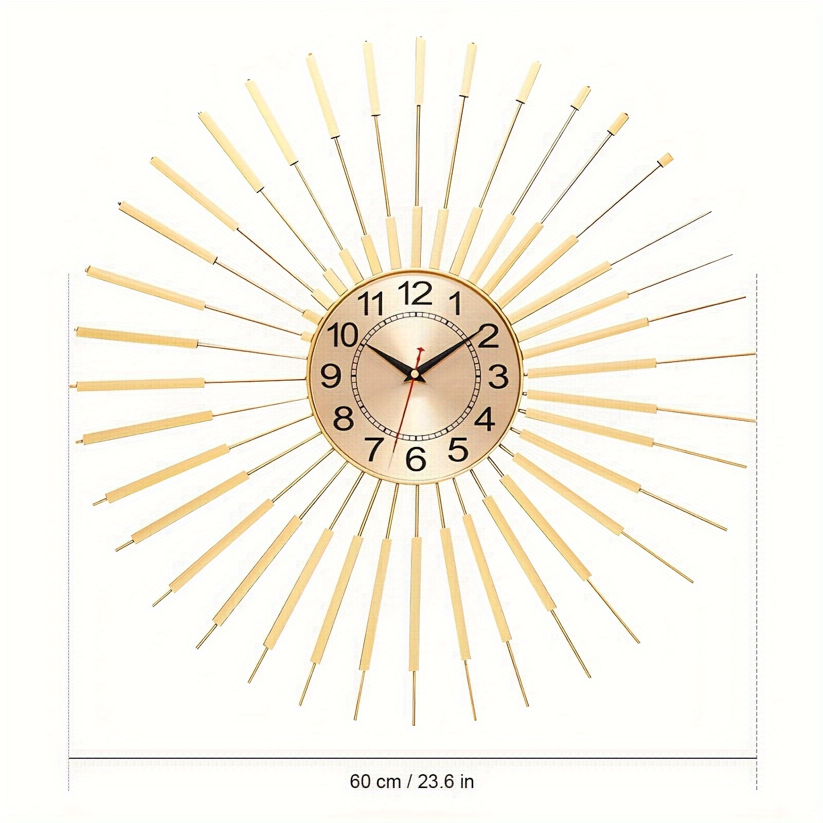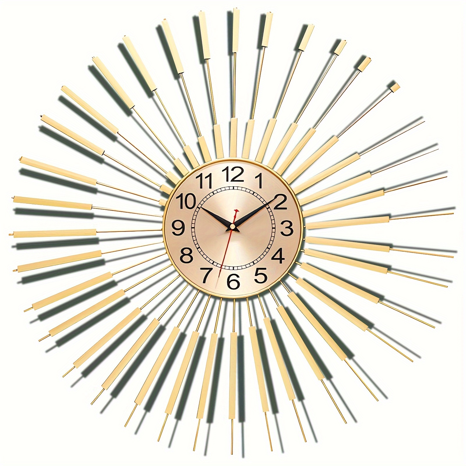 24 Inch Large Starburst Decorative Wall Clock for Living Room Non-Ticking Golden Big Modern Metal Round Wall Clocks for Kitchen, Dining Room, Office, Kitchen Clock, Contemporary Clock, Stylish Timepiece, Silent Movement, Sile