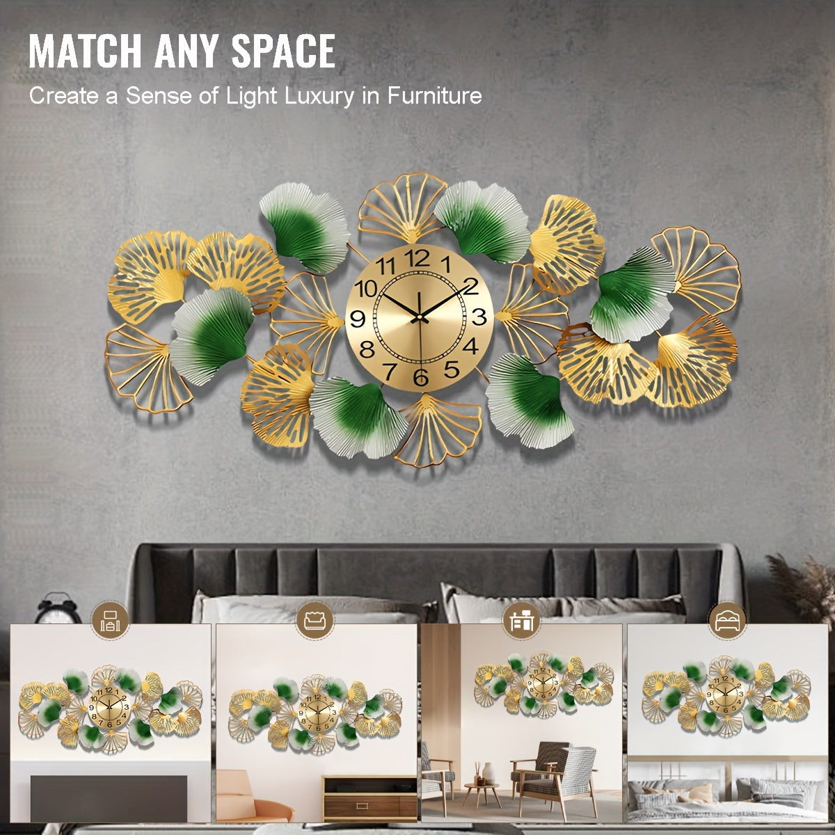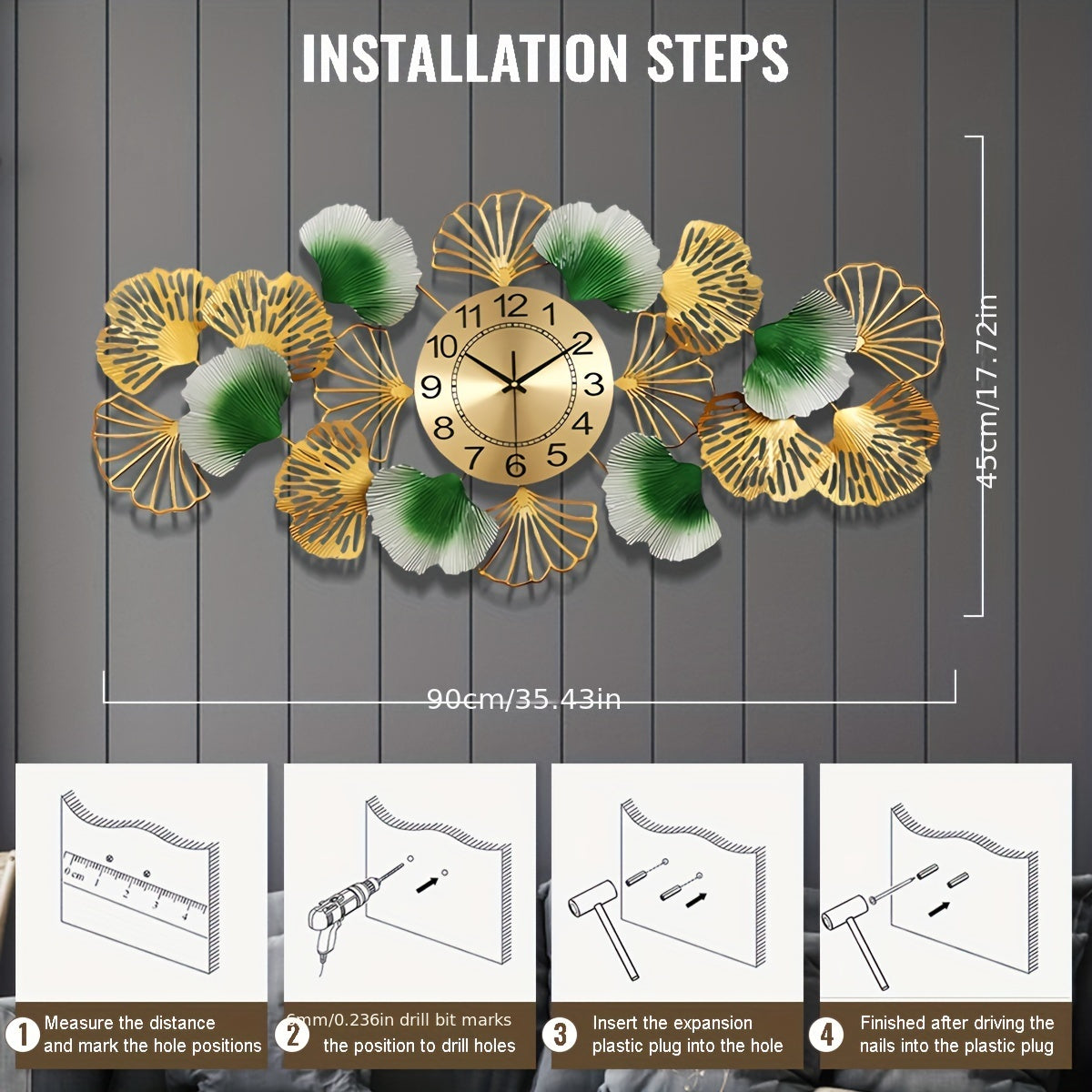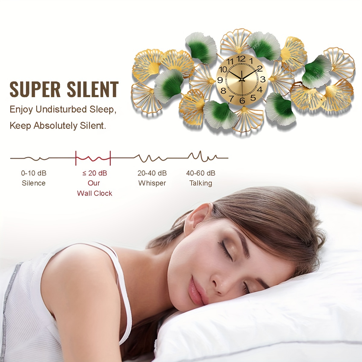 36 Inch Large Wall Clocks For Living Room Decor, Metal Ginkgo Leaf Wall Clock, Silent Non-Ticking Decorative Wall Clocks For Bedroom Kicthen