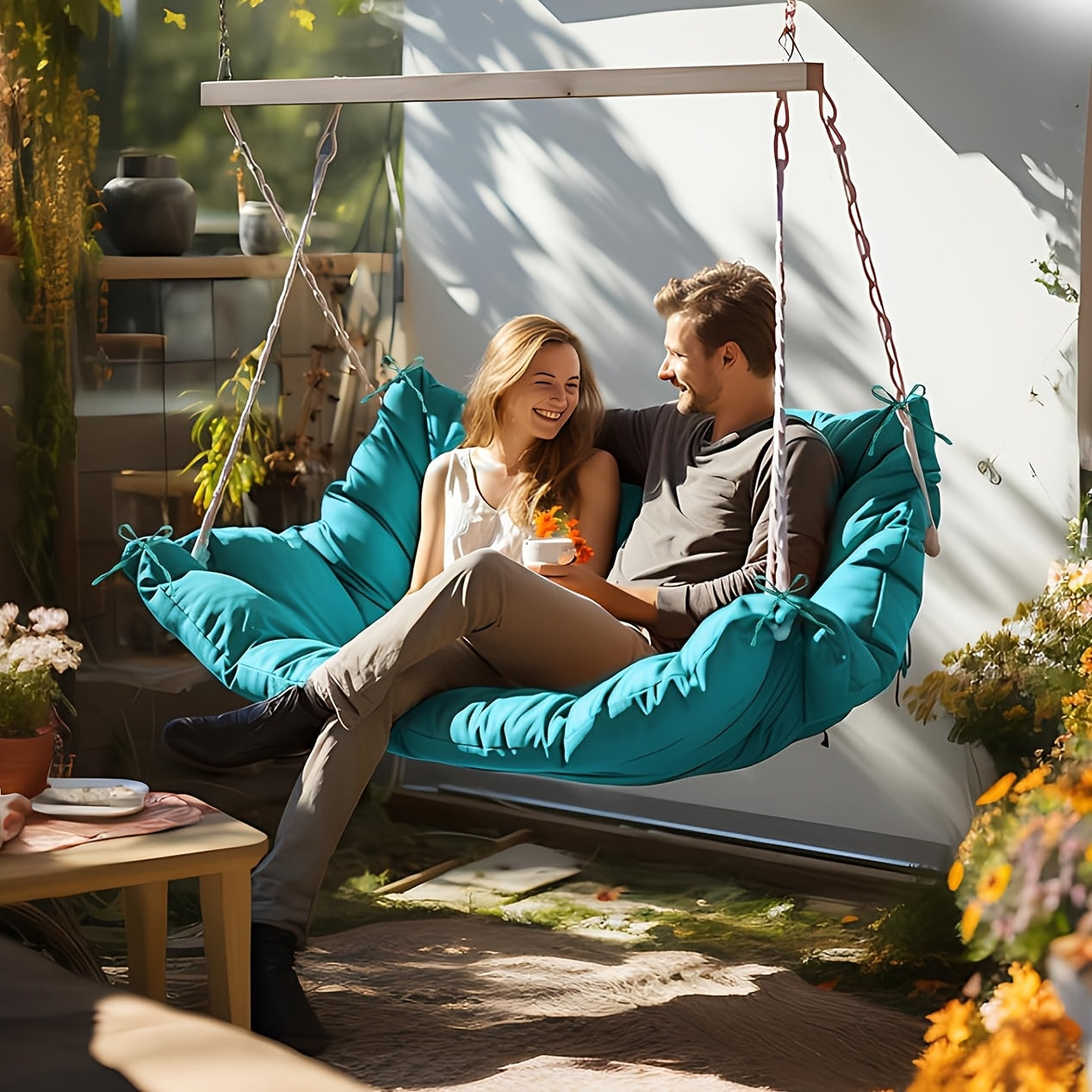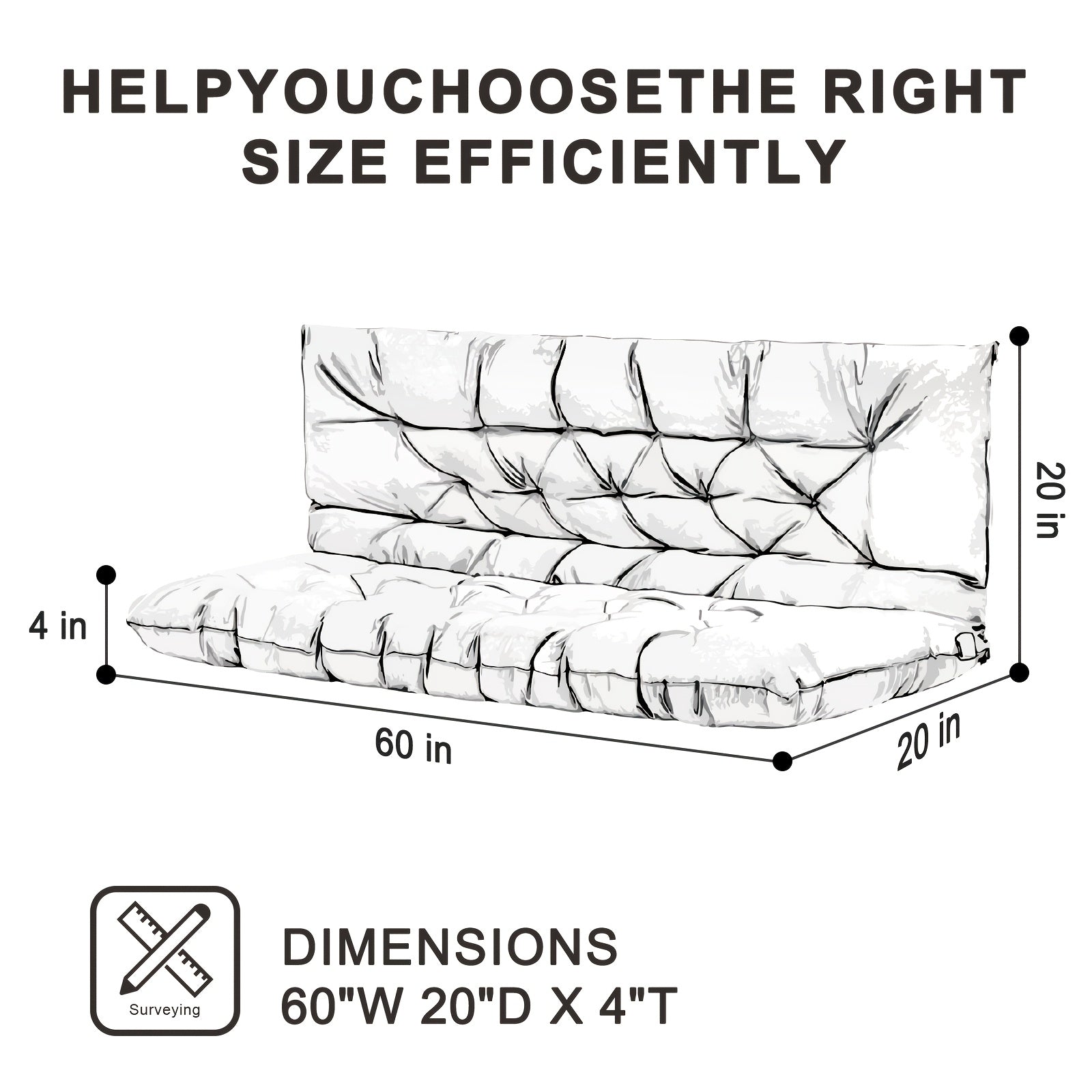Extra Large 60x40 Inch Outdoor Swing Cushion with Backrest - Heavy-Duty Waterproof Bench Cushion for Porch, Patio, Garden - Thickened 4-Inch, All-Weather Fiber with Tie Fasteners - Compatible with Swings, Benches, Sofas - Mul