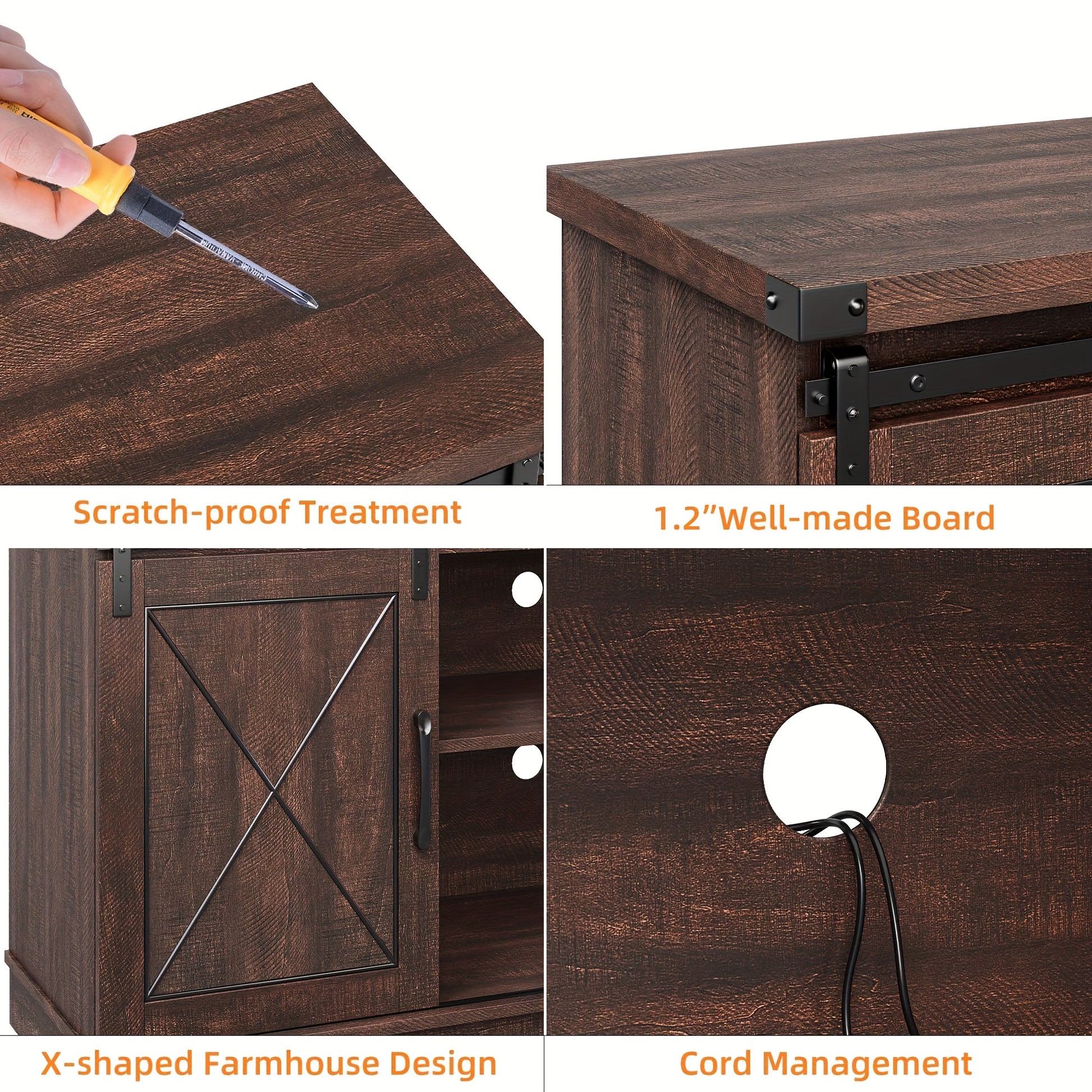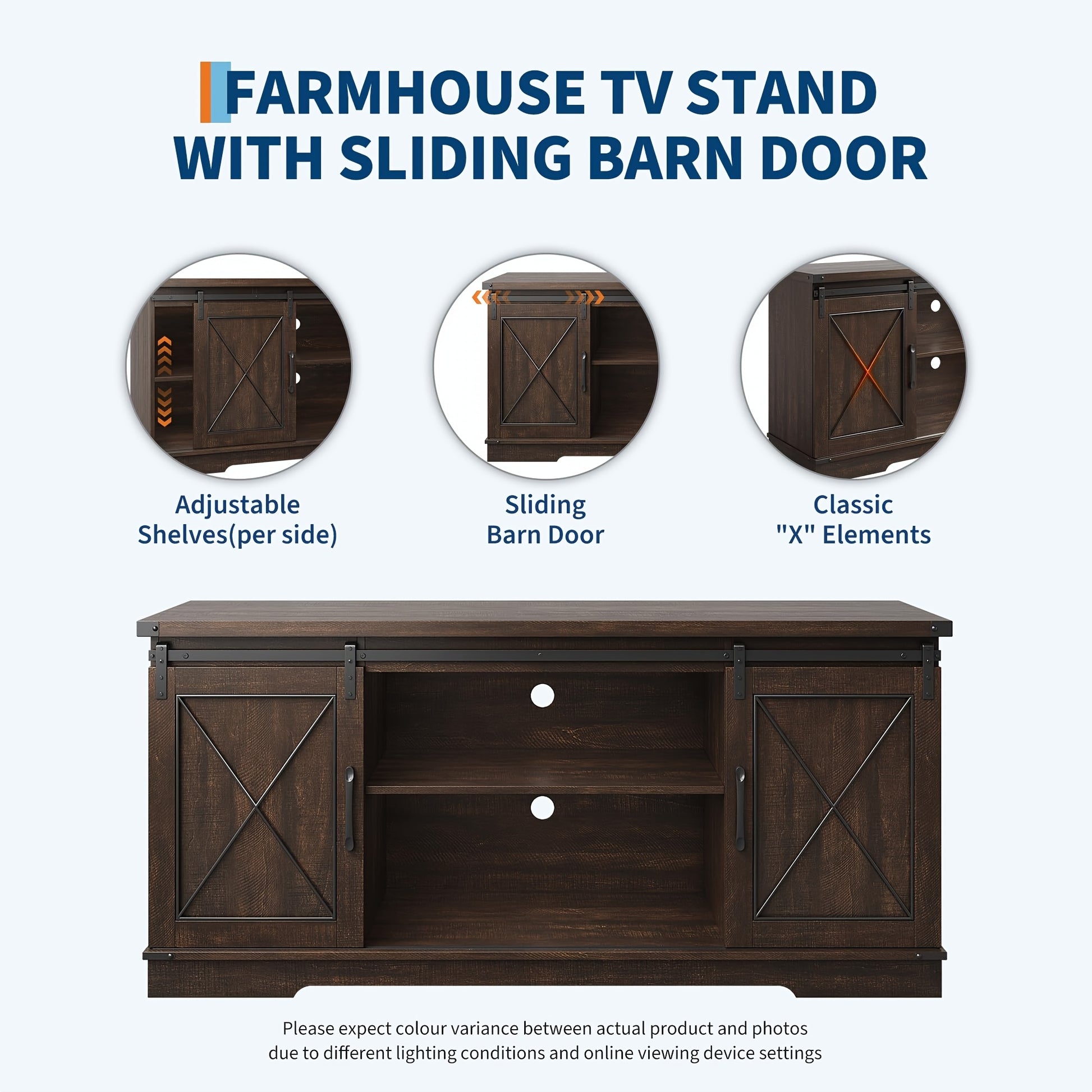 Farmhouse TV Stand And Entertainment Center for TV Up to 65 Inches with Sliding Barn Doors And Adjustable Shelf, Tv Media Console Table with Storage Cabinet for Living Room, Bedroom, Brown