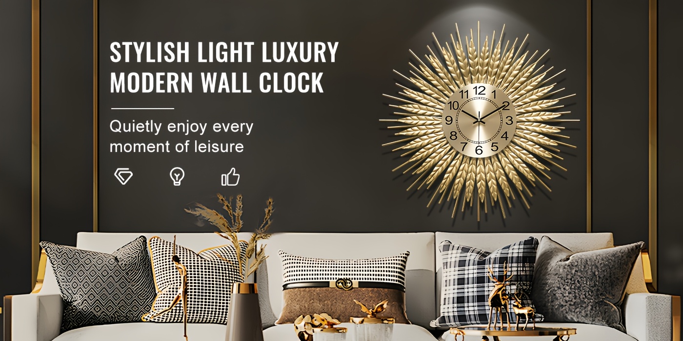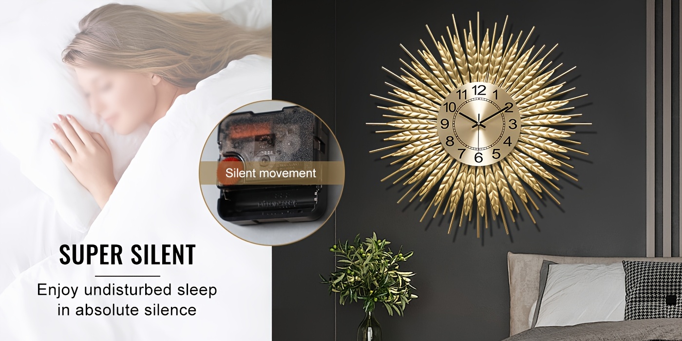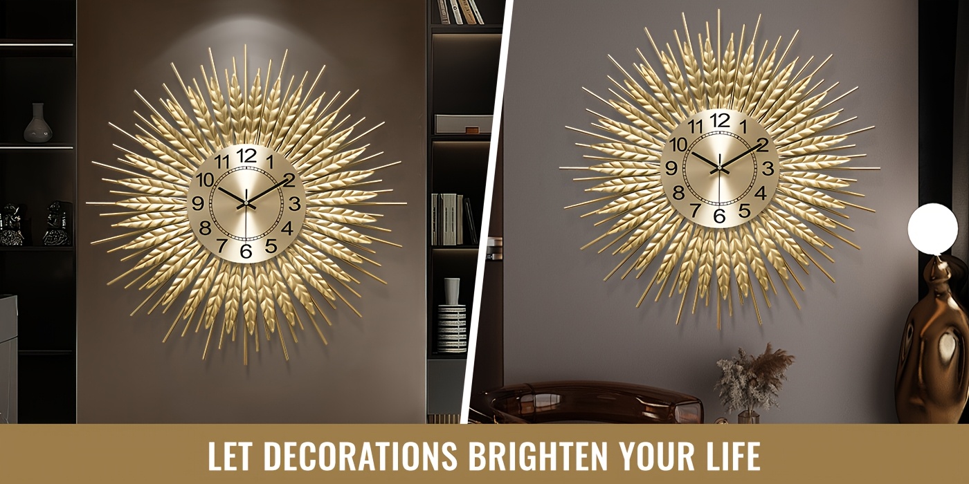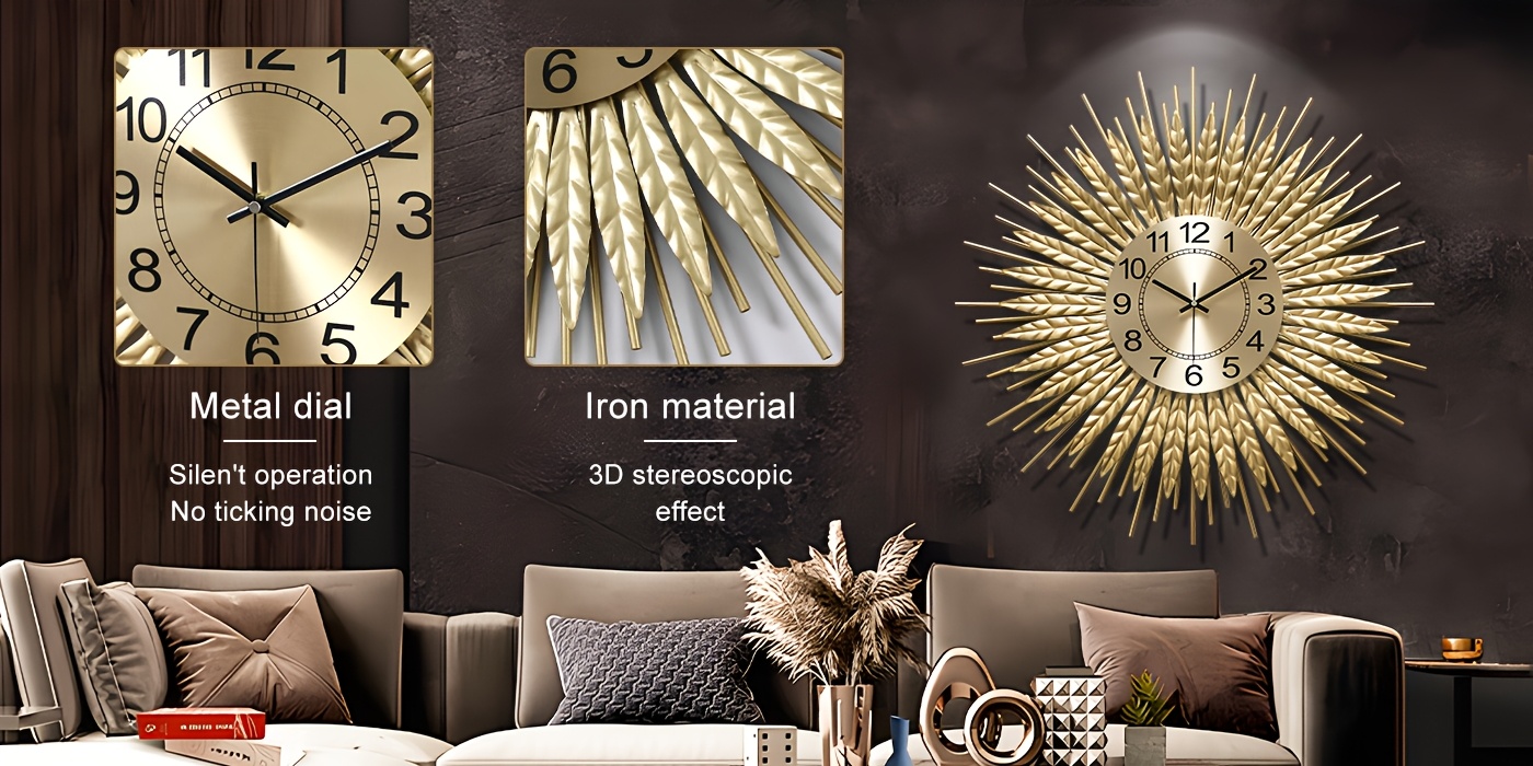 Golden Modern Silent Wall Clock For Living Room, 24 * 24 Inch Luxury Metal Decorative Wall Clocks, 3D Creative Timepiece For Home Decor Enthusiasts Perfect Gift For Housewarming Birthday