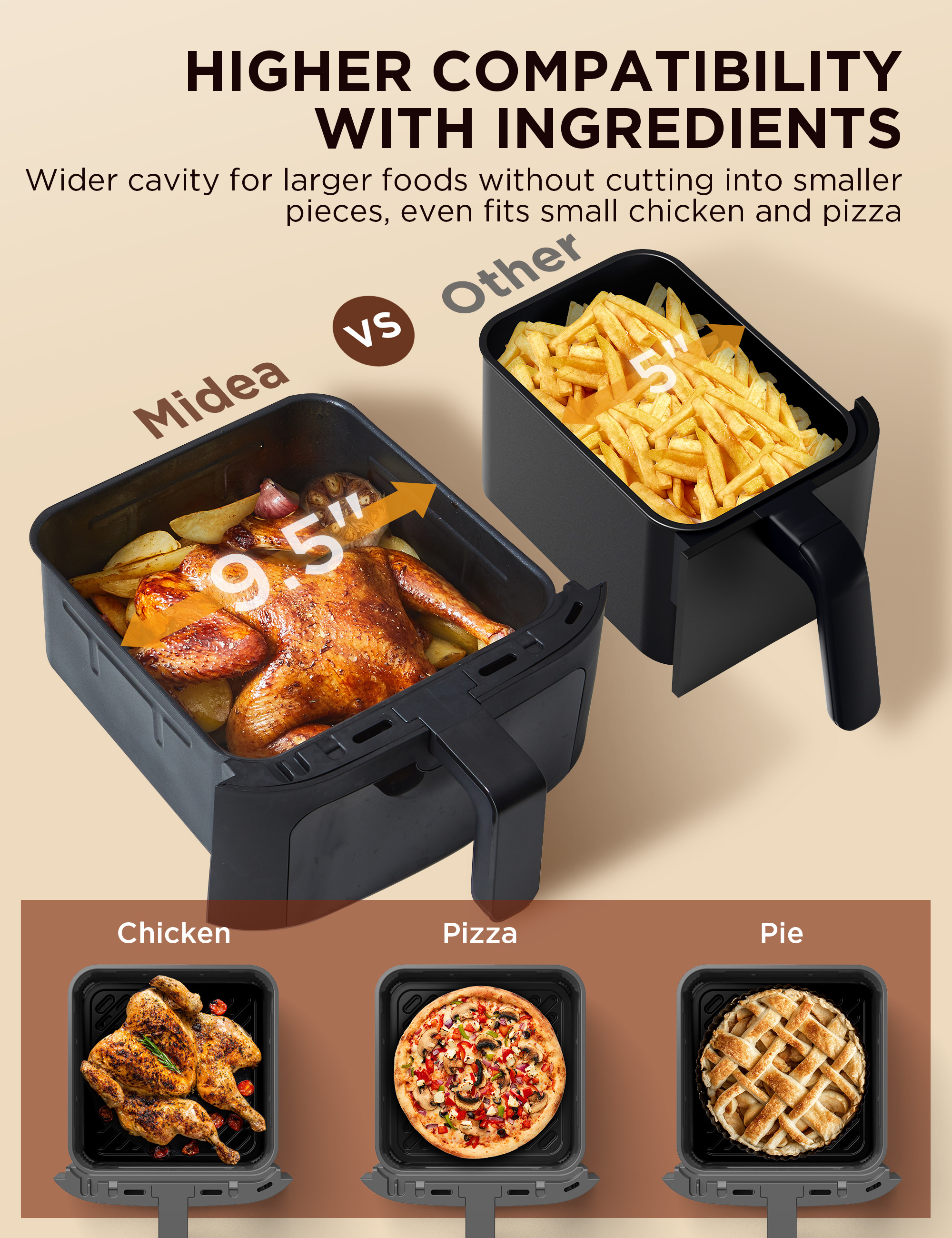 · Midea air fry is a versatile appliance that comes with 8 preset menus: air fry, grill, dehydrate, bake, roast, broil, reheat, and toast.