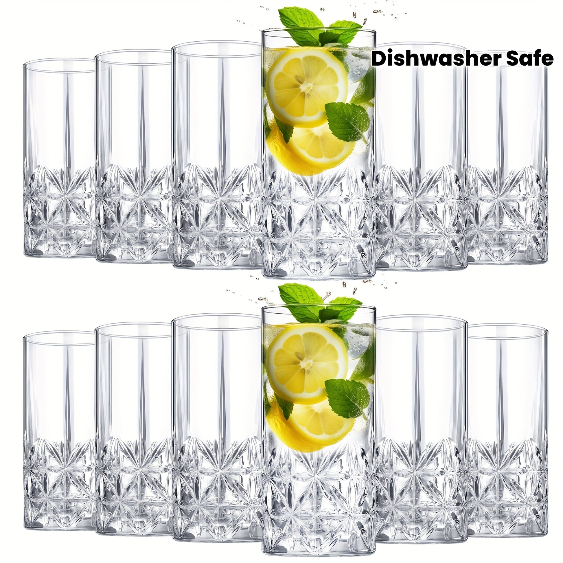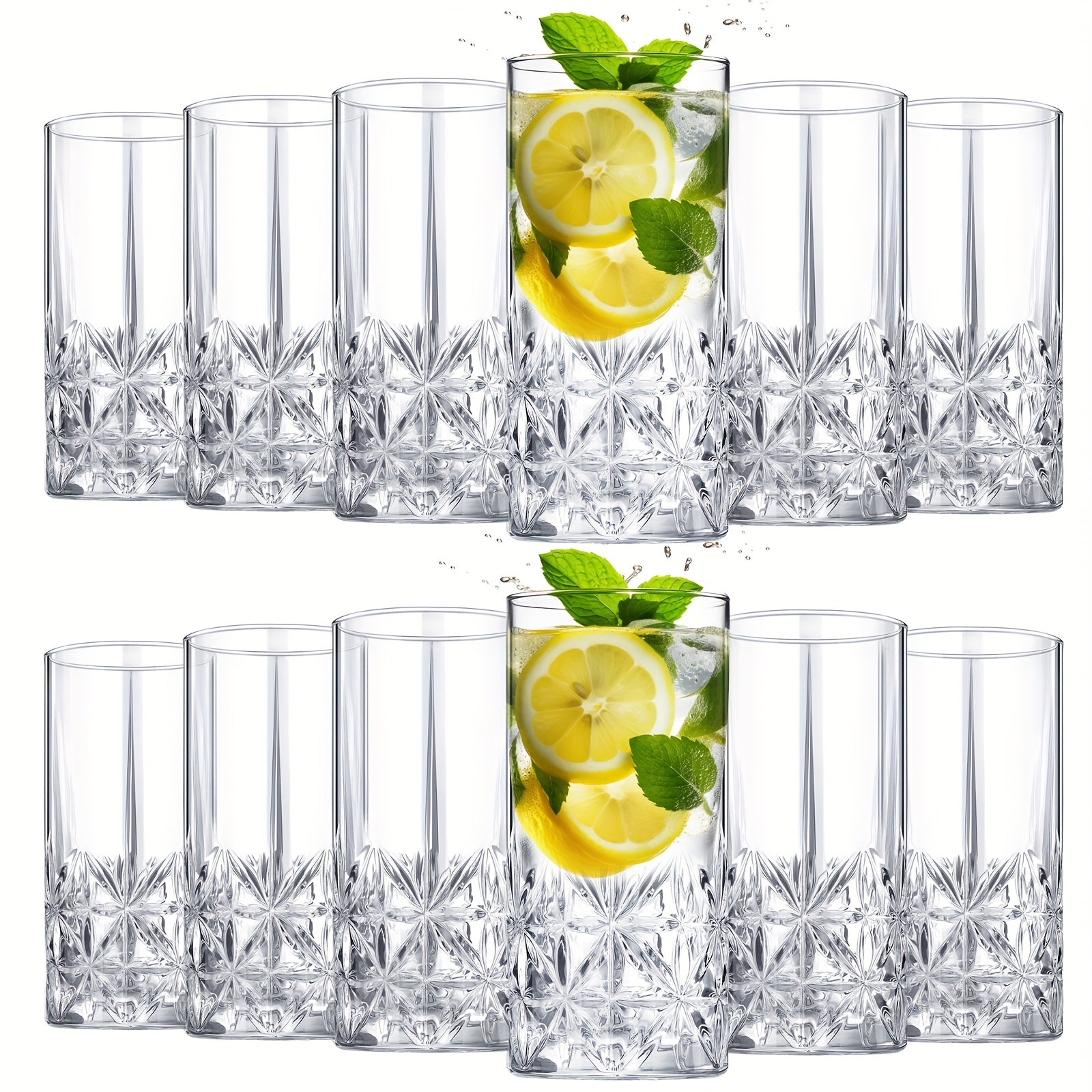 Set Of 12 Tall Highball Glasses 12oz Crystal Drinking Glasses Clear Fancy Glass Cups Vintage Textured Designer Glassware for Roostertail Tea Water Beer Soda Beverages, Dishwasher Safe, easter and wedding gift