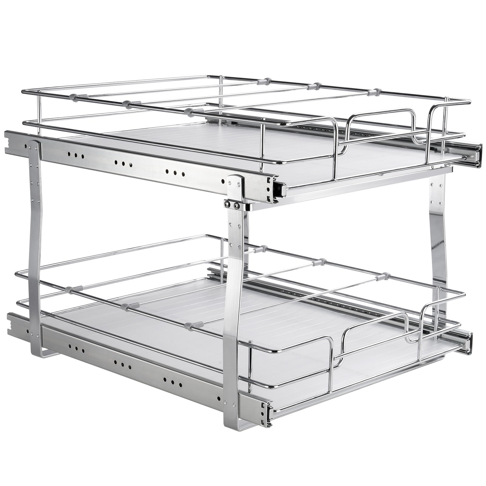 VEVOR 2 Tier 19"W x 20"D Pull Out Cabinet Organizer, Heavy Duty Slide Out Pantry Shelves, Chrome-Plated Steel Roll Out Drawers, Sliding Drawer Storage for Inside Kitchen Cabinet, Bathroom, Under Sink